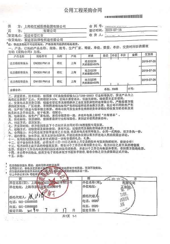 上海淞江減震器集團有限公司為您介紹:越南百凱彈性織造橡膠撓性接頭合同項目信息,淞江集團為眾多彈性織造企業提供優質橡膠接頭,以下是詳細介紹。